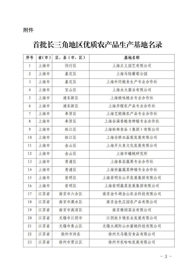 首批長三角地區(qū)優(yōu)質(zhì)農(nóng)產(chǎn)品生產(chǎn)基地名錄